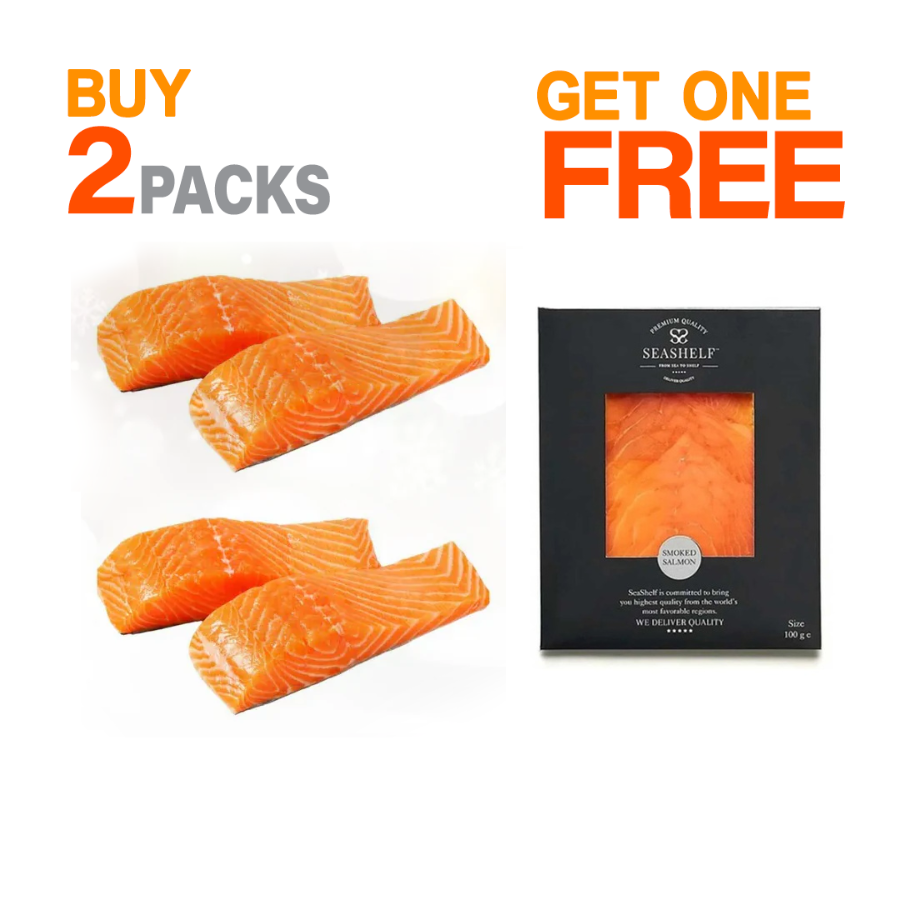 سالمون نرويجي، جمبري، سمك كامل منظف، فواكه البحر، سمك فيليه، ومجموعة مقبلات بحرية يدوية جاهزة للطهي.