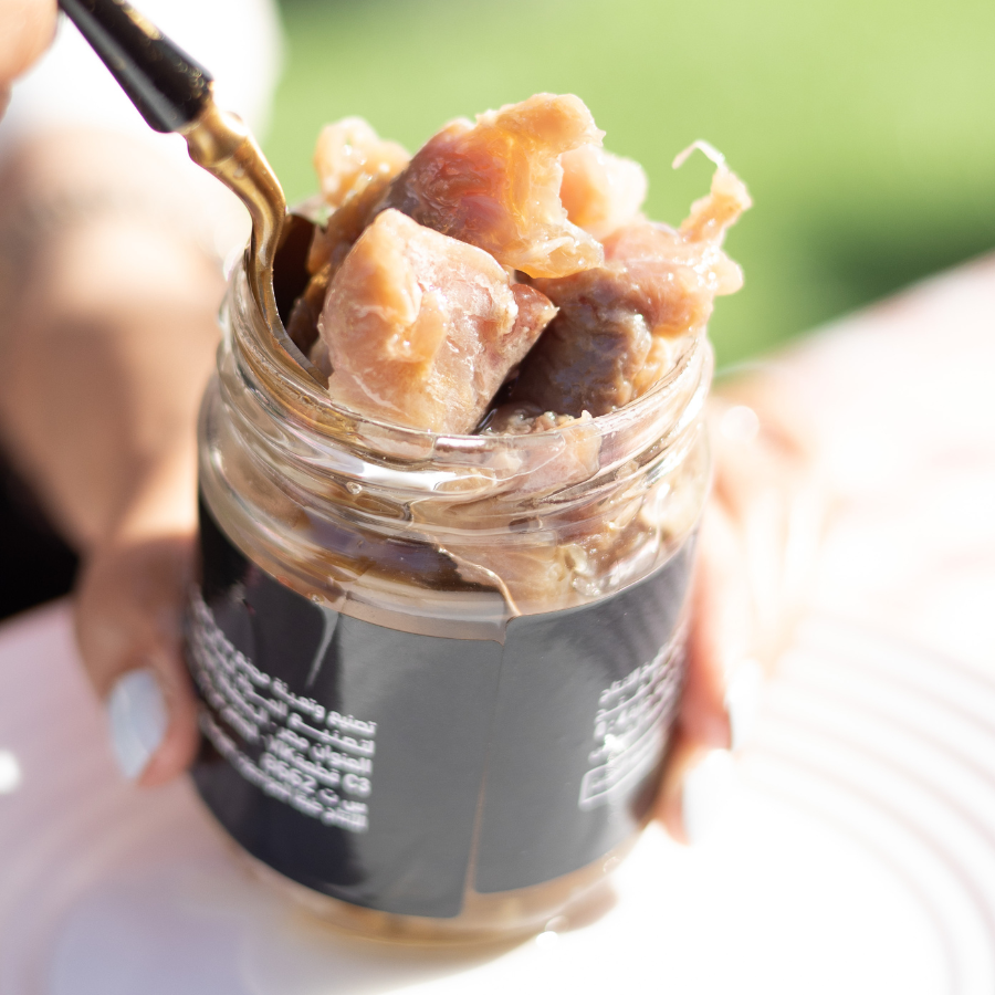 يُقدَّم مباشرة من العبوة، مع الخبز البلدي، والبصل الأخضر، وعصير الليمون الطازج.
