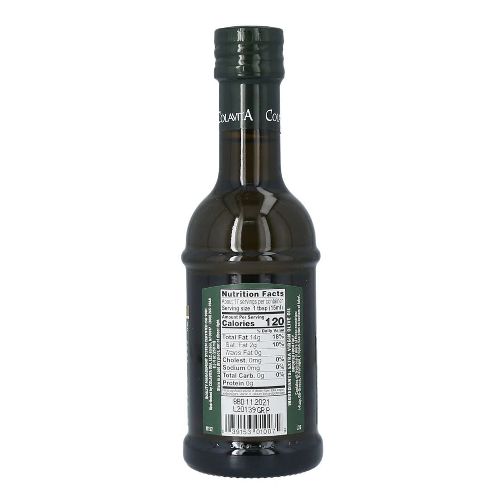 Colavita Premium Selection Extra Virgin Olive Oil is a cold-pressed, well-balanced blend of fruity and spicy flavors, made from olives grown in Italy, perfect for roasting, baking, dressings, and marinades, and cholesterol-free.